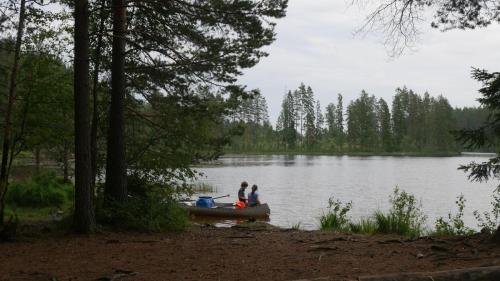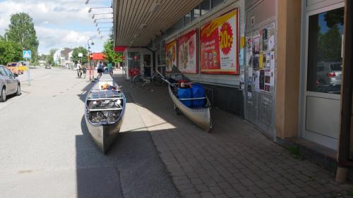 Der Ausweg aus dieser scheinbar ausweglosen Situation ist nicht etwa das Antrainieren besonderer Muskelkraft, sondern es sind die netten Anwohner, die am Seeufer in regelmäßigen Abständen in schmucken Schwedenhäusern wohnen. Sie laden einen ein auf ihr Grundstück zu kommen, zu pausieren und zur Ruhe zu kommen. Und wenn der Wind zum Sturm wird, dann kann man auch mal mit seinen Kanus eine kleine Wanderung über Land unternehmen und dabei direkt beim nächsten Supermarkt, an Land versteht sich, Halt machen.