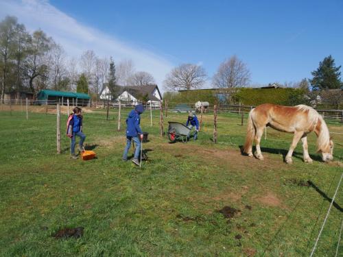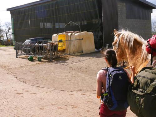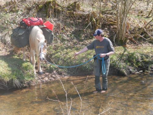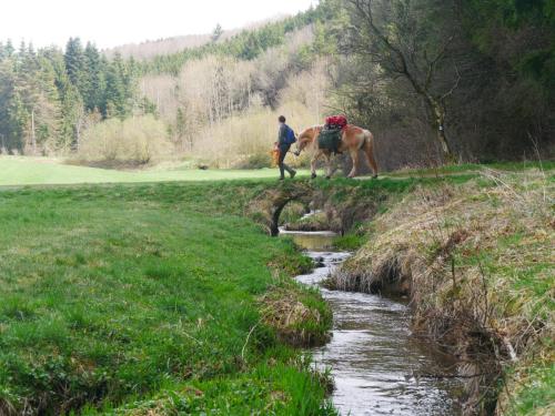 Die Bratkartoffeln zahlen sich aus. Die Eifel ist wunderschön, bisweilen aber auch recht steil und geradeaus gibt es auf den Wanderwegen ohnehin nicht. Es ist Anfang April und wir haben strahlenden Sonnenschein, der uns die noch immer sehr frostigen Nächte um diese Jahreszeit schnell wieder vergessen lässt. Die Landwirte und Wanderreithofbesitzer verköstigen und verwöhnen uns mit Brennnessellasagne, Marshmallow-Lagerfeuer und jede Menge Heu für William. Wir sind selig. Unsere erste längere Trekkingtour mit unserem William wird ein voller Erfolg. Von Prüm aus starten wir und erreichen nach zwei Wochen im Zickzack und über eine Schleife durch Belgien Simmerath. William trägt seinen Packsattel vollgepackt mit unserem Zelt, Schlafmatten, Kocher, Wechselklamotten und natürlich seinem Futter vorbei an knallgelben Narzissen, die zu Zehntausenden am Wegesrand blühen, und mit nur einem Tag Regen haben wir wirklich nicht gerechnet. So kann es auf der nächsten Tour gerne weitergehen.