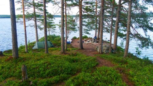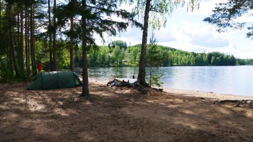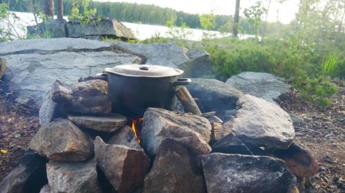 Der Ausweg aus dieser scheinbar ausweglosen Situation ist nicht etwa das Antrainieren besonderer Muskelkraft, sondern es sind die netten Anwohner, die am Seeufer in regelmäßigen Abständen in schmucken Schwedenhäusern wohnen. Sie laden einen ein auf ihr Grundstück zu kommen, zu pausieren und zur Ruhe zu kommen. Und wenn der Wind zum Sturm wird, dann kann man auch mal mit seinen Kanus eine kleine Wanderung über Land unternehmen und dabei direkt beim nächsten Supermarkt, an Land versteht sich, Halt machen.