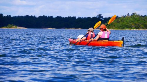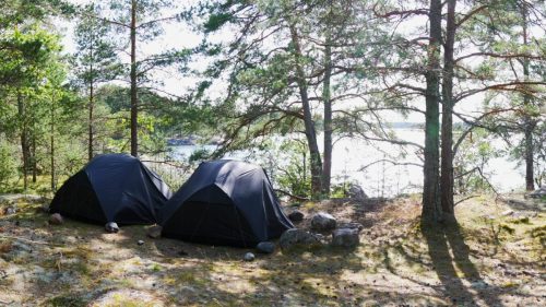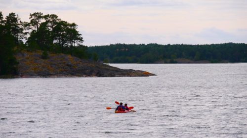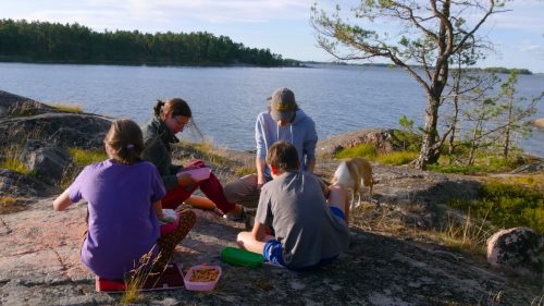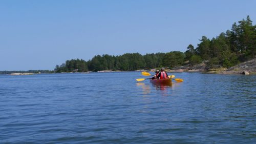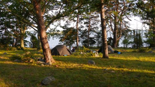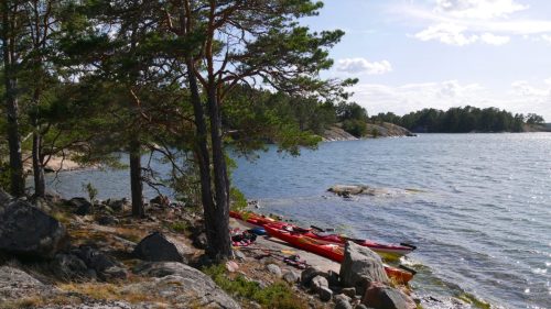 Keiner von uns paddelt. Stattdessen schauen alle fasziniert in den blauen Sommerhimmel. Genau über uns zieht ein imposanter Seeadler seine Kreise im wolkenlosen Blau. 10 Minuten später, wir schauen immer noch. Der Seeadler kreist ein letztes Mal und schwingt dann endgültig davon. Platsch! Gleichmäßig schlagen unsere Paddel ins Wasser und der Blick ist wieder nach vorne gerichtet auf der Suche nach einer neuen Insel für diese Nacht. Die Auswahl fällt schwer. Im Schärengarten von Saint Anna & Gryt reiht sich eine traumhafte Insel an die nächste. Aber so können wir entspannt genießen, denn ein zauberhafter Schlafplatz ist uns immer sicher.