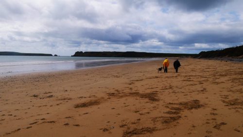 Mäh! Ein flauschiges Schaf schaut etwas irritiert als wir vollgepackt seinen Weg auf der Klippe kreuzen. Es scheint nicht recht glauben zu wollen, dass sich bei dem windigen Wetter noch jemand außer ihm hier nach draußen wagt. Es ist Anfang April und wir sind mit Zelt und Hund unterwegs auf dem Pembrokeshire Coast Path in Wales. Dieser Wanderweg schlängelt sich immer entlang der walisischen Küste und hinter jeder Kurve wartet ein immer noch atemberaubenderer Ausblick. Es geht auf und ab. Sonne, Wind und Regen wechseln sich stetig ab und wir genießen unser erstes Mal in Wales so sehr, dass wir bestimmt nochmal wieder kommen!